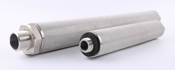 采用多層不銹鋼燒結(jié)網(wǎng)制成的圓柱形濾芯。多層金屬燒結(jié)網(wǎng),是選用不同絲徑和目數(shù)的不銹鋼金屬網(wǎng),按一定次序排列,經(jīng)高溫?zé)Y(jié)制作而成的一種實(shí)用性過(guò)濾材料,具有孔徑分布均勻、耐高溫、易于焊接、可再生、壽命長(zhǎng)等優(yōu)點(diǎn)。